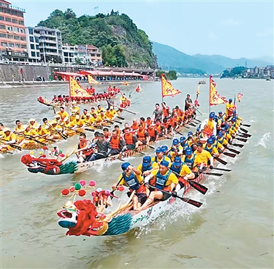 本报电(舒旭影)近日,“旌鼓龙舟渡 非遗零距离”龙舟竞渡赛在浙江省丽水市青田县举行,来自青田的7支队伍、共百余人齐聚瓯江畔参加比赛。每年端午节前后,都有海外华侨华人回国参与青田的龙舟赛事活动,由西班牙龙舟协会组成的华侨龙舟队也参加此次竞渡赛。