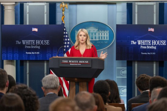 5月29日,在美国华盛顿白宫,白宫新闻秘书卡罗琳·莱维特出席记者会。新华社记者胡友松摄