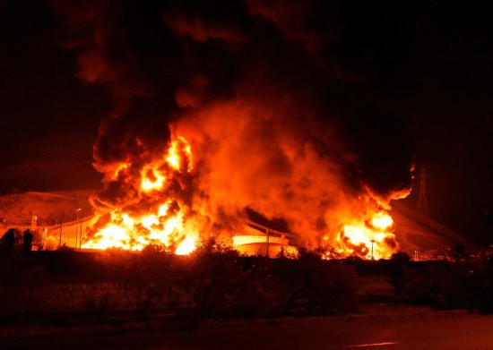 这是6月15日凌晨拍摄的伊朗首都德黑兰附近遭以色列袭击起火的储油设施。新华社/美联
