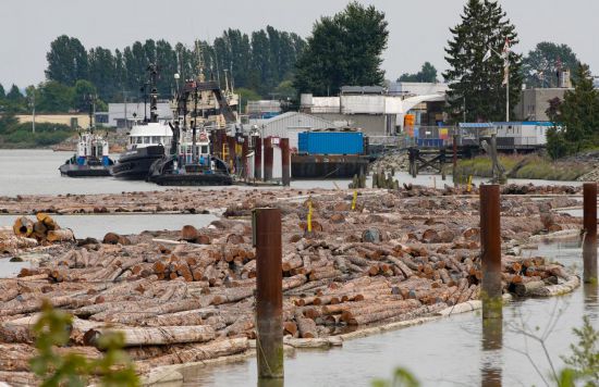 这是8月5日在加拿大里士满拍摄的弗雷泽河上的木材。加拿大总理卡尼5日宣布,受美国加征关税等因素影响,政府将提供12亿加元支持加拿大软木材行业发展。新华社发(梁森摄)