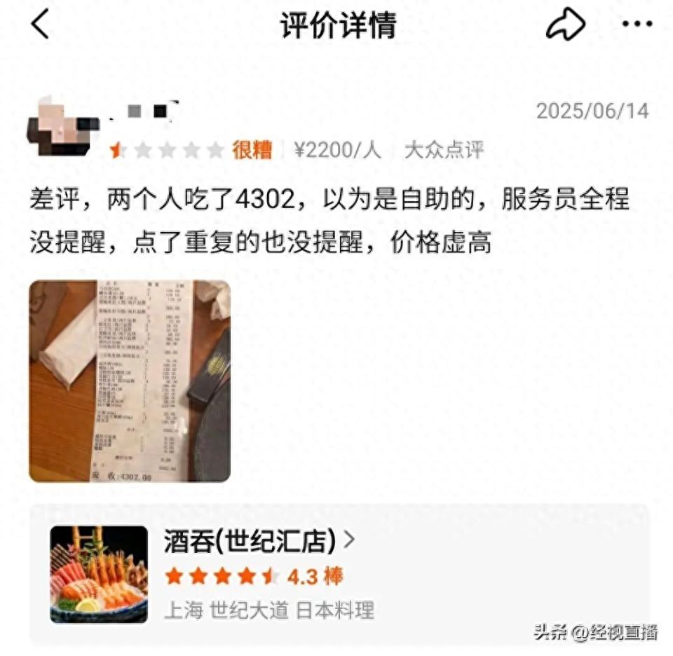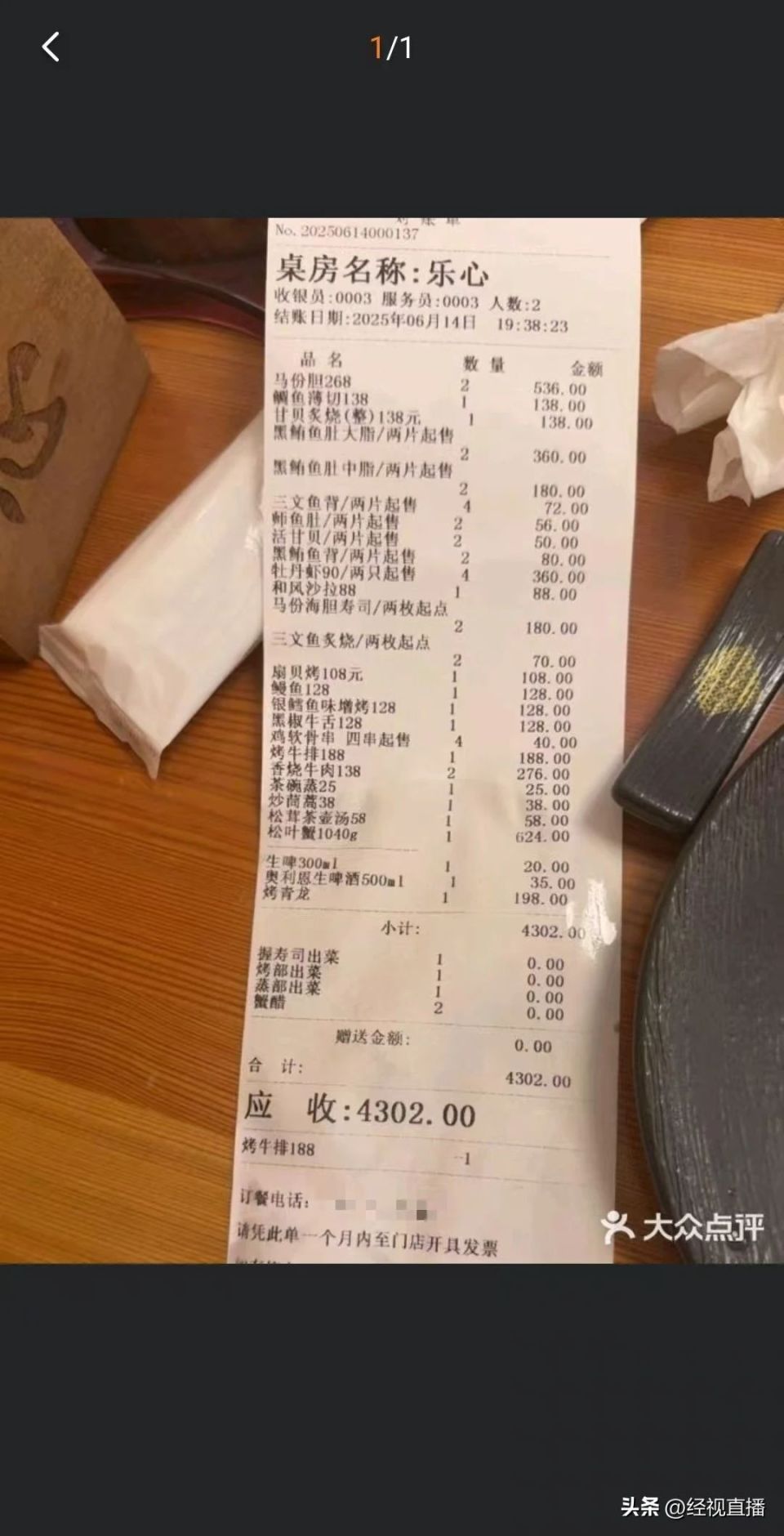 日料店回应顾客误当自助餐消费4302元。近期,有网友在社交平台发帖称,其在上海浦东新区一日式料理店就餐时,因误以为该店销售的套餐是自助形式,故在点单时点了不少菜,最后结账时发现消费金额竟高达4302元。日料店回应顾客误当自助餐消费4302元。