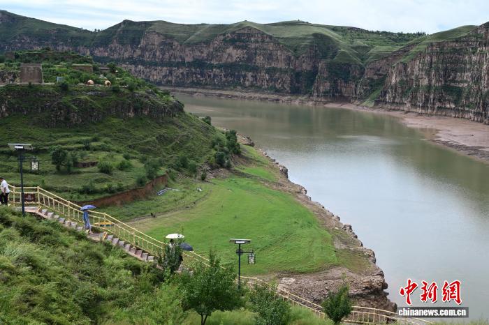 8月19日,内蒙古呼和浩特市清水河县,游客在老牛湾景区游览。中新社记者 刘文华 摄