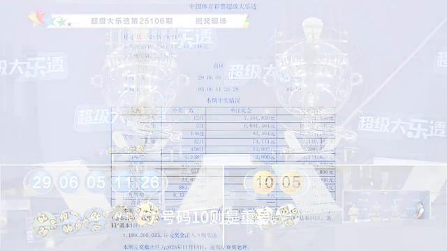 随着摇奖机滚动,本期的开奖号码揭晓:前区号码为05、06、11、26、29,后区号码为05、10。具体出号顺序为前区29、06、05、11、26,后区10、05。