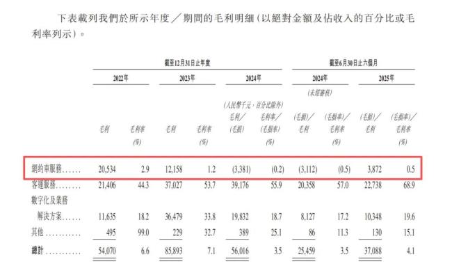 盛威时代的网约车业务增长迅猛,但因高额的司机端费用、平台费用以及补贴,导致利润水平极低。报告期内,2022年该业务的毛利率为2.9%,之后逐年下降,2024年甚至低至-0.2%。今年上半年有所好转,也仅有0.5%。
