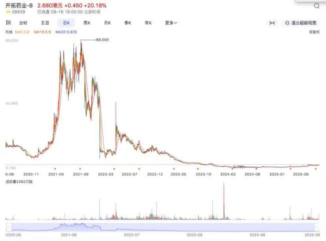 自9月10日以来过去五个交易日涨幅超过7倍,市值逼近2500亿港元、在港股创新药新“二哥”位置上“拳打”信达、“脚踢”康方,狂得没边了的药捷安康,今天突然被打回“原形”。