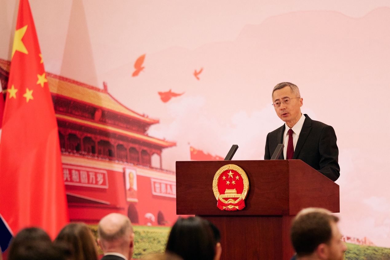 中国驻英国大使馆临时代办王起发表致辞。杨浩鹏摄