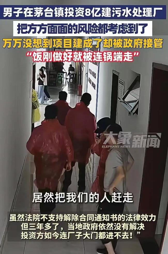 8亿污水厂被接管是关门打狗还是违约 营商环境信誉受损!重庆老板唐显策响应茅台镇招商号召,投入8亿建成白酒废水处理厂。工厂刚有收益就被当地部门强制接管。尽管法院判定“解除合同通知书”无效,但三年过去,工厂仍未归还,唐显策血本无归。此事引发网友热议,有人痛斥“关门打狗”,也有人呼吁看完整细节。从法律和营商环境角度看,这一事件暴露的“违约侵权”问题对地方招商信誉打击极大。