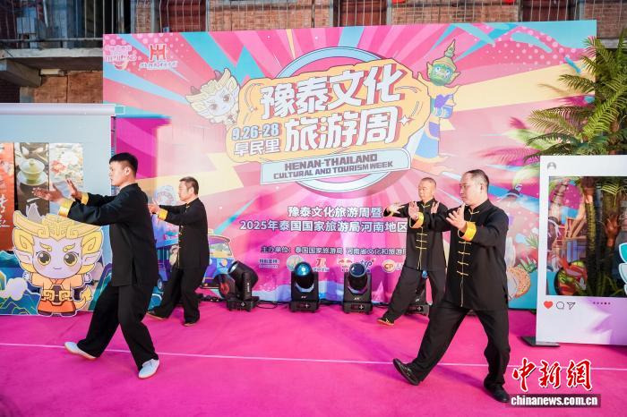 9月26日,豫泰文化旅游周暨2025泰国国家旅游局在豫推广活动在河南郑州举办。该活动由泰国国家旅游局与河南省文化和旅游厅联合举办,现场通过舞蹈交流、泰拳互动、非遗展演、文化市集等形式,搭建起豫泰文化交流的桥梁,为河南民众带来一场不出家门的跨国文化体验。图为武术表演现场。任洁 摄