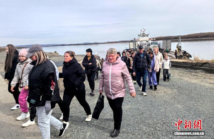 11日9时许,随着薄雾散去,一艘渡轮从对岸俄罗斯波克罗夫卡口岸缓缓驶来,10分钟左右,渡轮稳稳停在饶河口岸。100余名俄罗斯籍旅客快速下船换乘客车进入安检大厅开始通关。