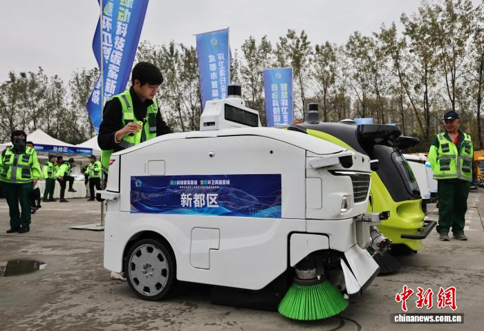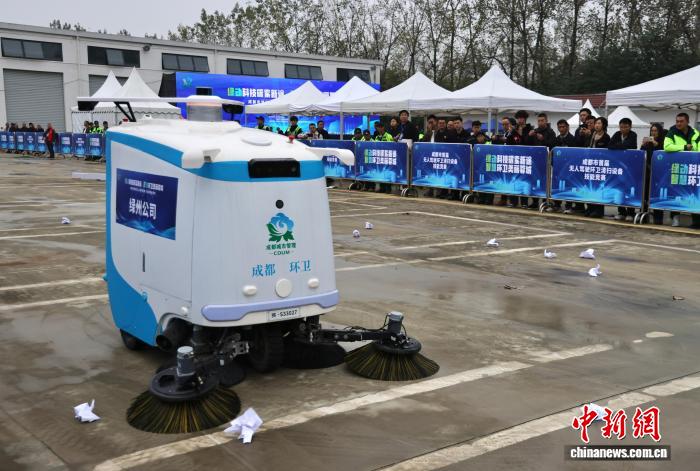 成都“无人驾驶环卫车”同台竞技 “智慧清洁”驶入城市生活