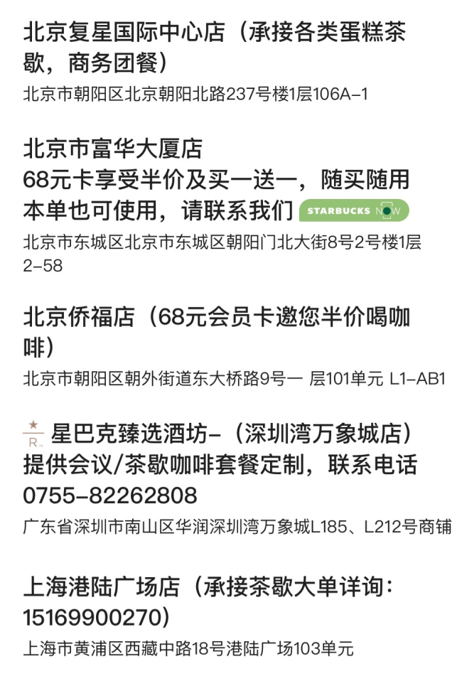 在总部行动之前,星巴克很多门店已经自己动手,在星巴克应用里给店名加上了朴实直接的促销话术。