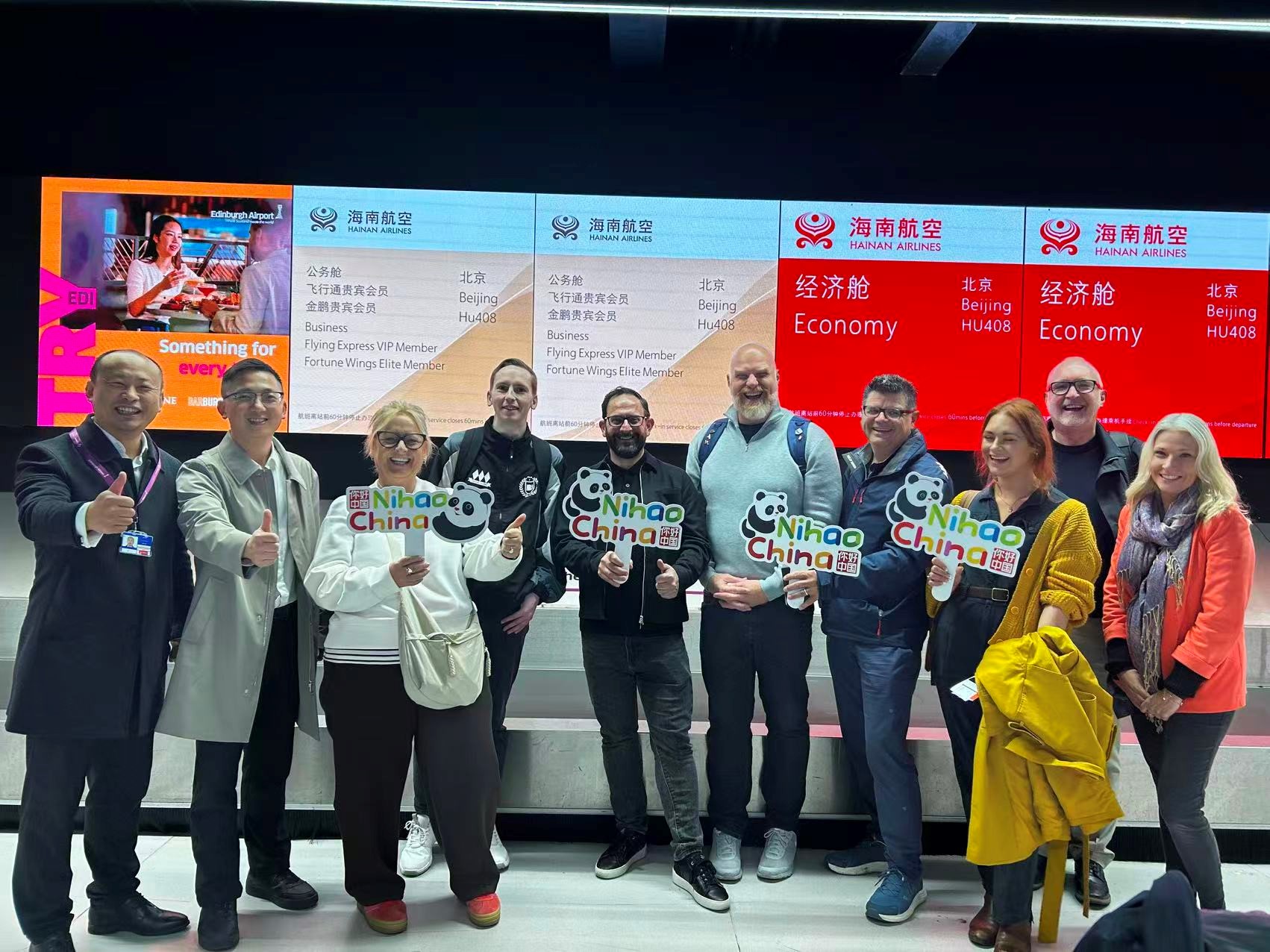 爱丁堡赴华旅游踩线团搭乘海南航空前往中国。主办方供图