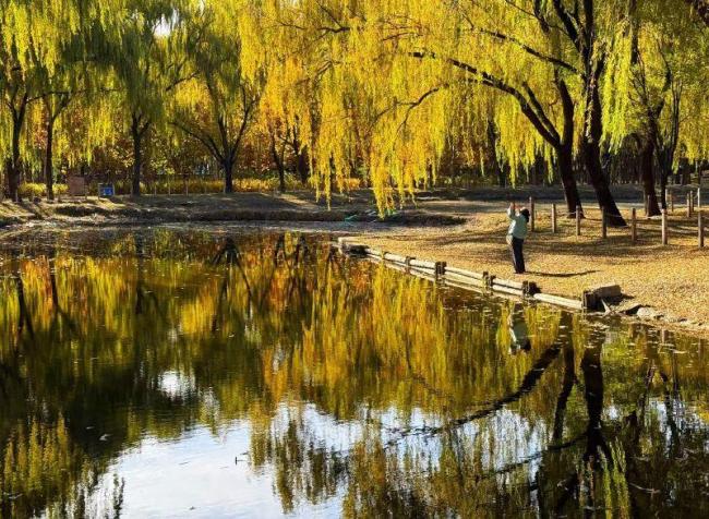 11月9日,北京古塔公园秋色斑斓。岸边金黄色的垂柳与水中倒映相映成趣,秋风拂过银杏林,黄叶簌簌飘落。小朋友们穿梭在林间捡拾树叶,在银杏林中肆意奔跑,享受秋日野趣。漫天飞舞的树叶织就了一场浪漫的“落叶雨”。