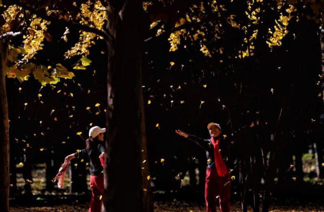 京城寻秋 银杏叶织金毯,古塔公园飘起“落叶雨” 秋日野趣乐无穷