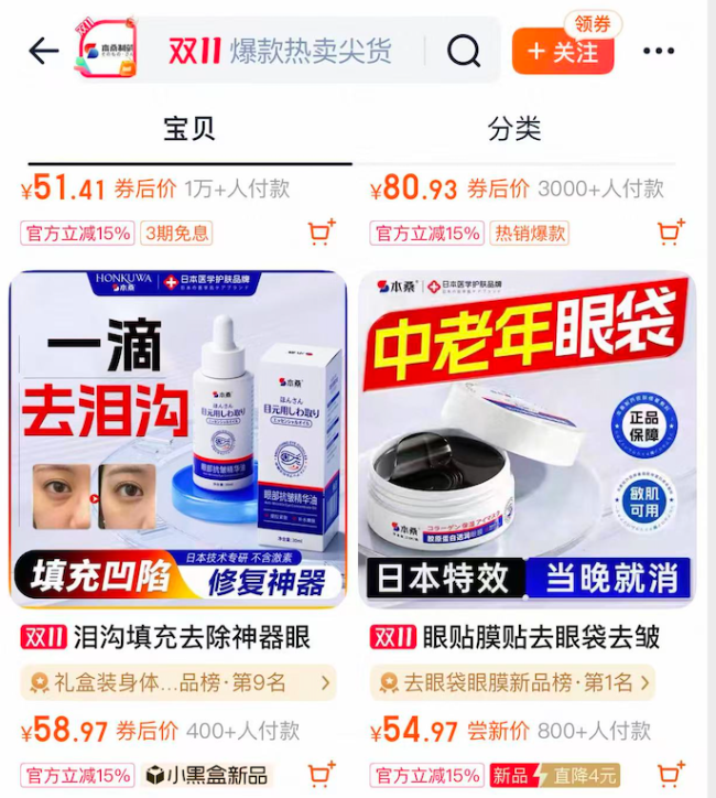 尽管本桑制药京东旗舰店随后发布声明,称已开展页面自查,整改“违规用语”,并强调“不接受且不妥协以任何形式的极限词赔付”,但中华网财经注意到,截至发稿,其淘宝旗舰店中“眼袋当晚消”、“保底少18斤”、“一滴去泪沟”、“当晚就消(眼袋、眼纹)”等宣传语依然醒目存在。