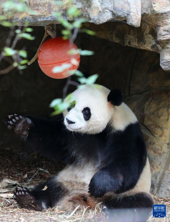11月10日,大熊猫“怡兰”在澳大利亚阿德莱德动物园玩耍。新华社记者 马平 摄