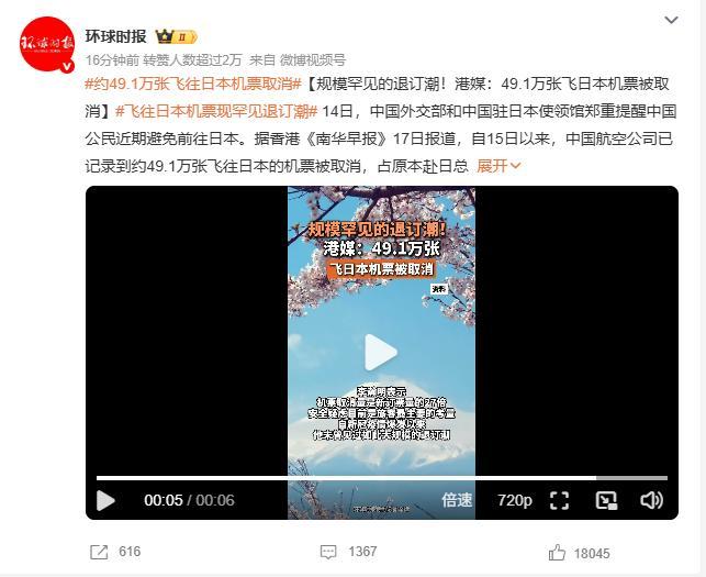 自8月15日起,中国内地航空公司累计记录到约49.1万张赴日机票被取消,占原定总预订量的32%。独立航空分析师李瀚明指出,16日当天,受影响航班比例飙升至82.14%,次日仍高达75.6%。这场退订潮不仅覆盖主流航司,还波及几乎所有热门航线——从东京羽田到大阪关西,从札幌新千岁到福冈机场,无一幸免。