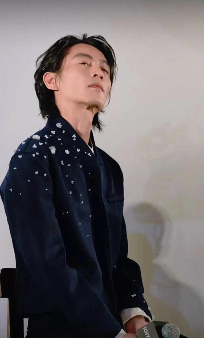 陈晓现在瘦得简直像换了个人。在《大生意人》的宣传现场,他穿着深蓝色西装显得空荡荡,178厘米的身高只剩下100斤体重,说话时要用手撑着膝盖喘气。狼尾长发衬得脸颊更加凹陷,看题板时需要佝偻着背往前凑,答题板上的字体从初号调到特大,他还要眯眼凑到十厘米处才能看清。主持人让他卖萌互动时,他皱眉抿嘴的表情被做成动图疯传,网友配文“被迫营业现场实录”。