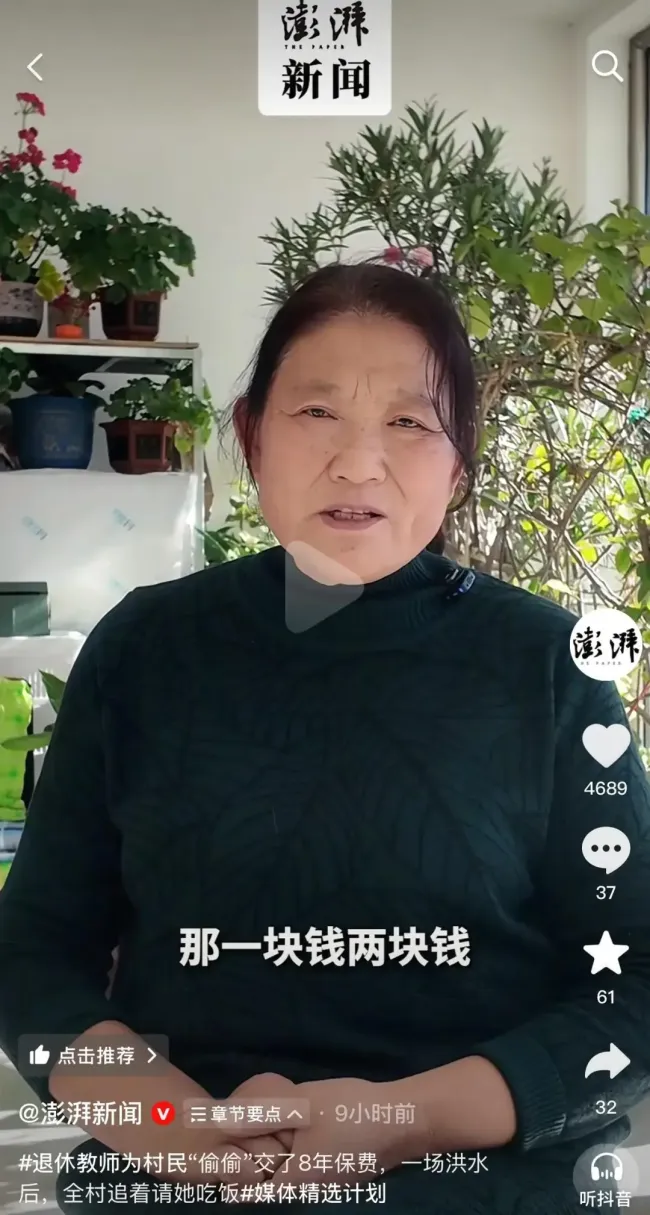河北滦平马营子乡马营子村党支部书记张淑云,为村民默默交了8年农房保险的保费。今年洪水过后,村里受灾的73户家庭通过农房保险共获赔近百万元。