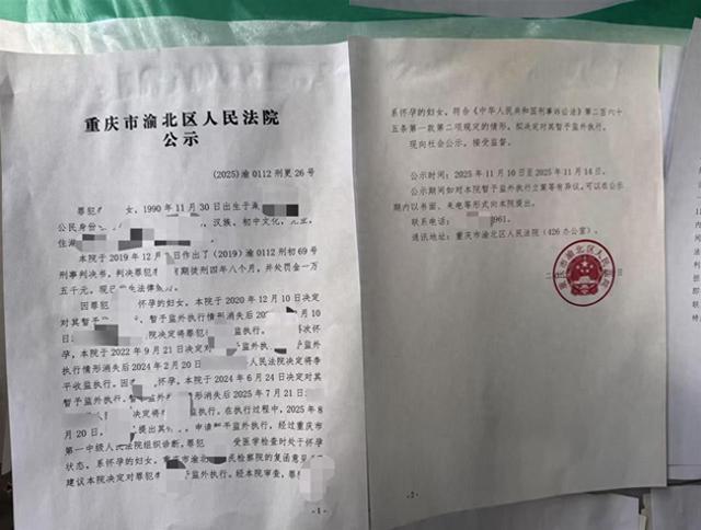 1月6日,在渝北区人民法院诉讼服务中心门口的公告栏上确实贴有这份公告,案号为(2025)0112刑更26号。公告中提到,罪犯李某于1990年11月30日出生。2019年12月3日,法院判决其有期徒刑四年八个月,并处罚金一万五千元。由于李某是怀孕妇女,法院于2020年12月10日决定对其暂予监外执行。此后,李某多次怀孕,每次怀孕后都会申请暂予监外执行,直至2025年7月21日被收监执行。2025年8月20日,李某再次提出怀孕申请,经过医学检查确认怀孕状态。重庆市渝北区人民检察院建议法院决定对李某暂予监外执行。法院决定向社会公示,接受监督,公示时间为2025年11月10日至11月14日。
