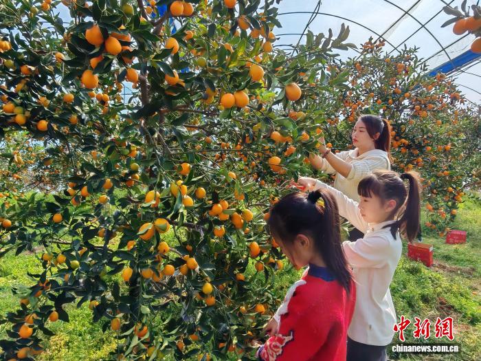 如今,在他的60余亩金柑大棚内,水肥一体化、微喷灌等现代化设施完备,金果累累,游客穿梭其间,采摘品尝。