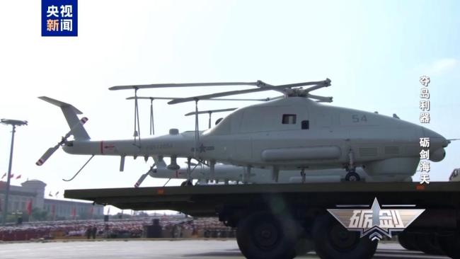 2025年的九三阅兵式上展示了一款舰载无人直升机,这标志着此类装备已成为伴随水面舰艇深入远海的重要工具,对于增强海军远海侦察探测能力具有重要意义。