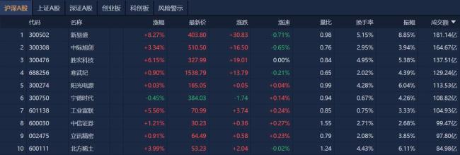 沪指跳空涨超1% 逼近4000点 创十年新高沪指早间震荡走强,再创十年新高,逼近4000点。截至早盘收盘,沪指涨1.04%,深成指涨1.26%,创业板指涨1.54%。盘面上热点快速轮动,算力硬件方向表现强势,东田微触及20cm涨停,新易盛、汇绿生态、中际旭创盘中均创历史新高