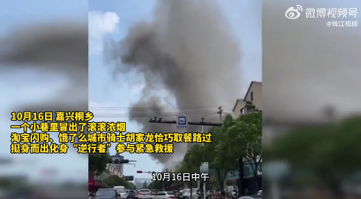 浓烟中逆行!小巷起火外卖小哥逆行疏散人群“如果看到这种情况我不帮忙,我会感觉到内疚。”10月16日中午,浙江桐乡市庆丰北路与文昌路交叉口的小巷里突发火灾,外卖小哥胡家龙取餐途经现场,他第一时间挺身而出。在判断火势是自己没办法参与的后,胡家龙迅速佩戴上自备的过滤式消防自救呼吸器,随...