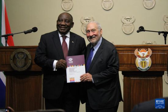 二十国集团报告呼吁国际社会共同应对全球不平等问题11月4日,在南非立法首都开普敦,二十国集团应对全球不平等问题特别独立专家委员会主席、诺贝尔经济学奖得主约瑟夫·施蒂格利茨(右)向南非总统拉马福萨提交关于全球不平等问题的报告。新华社发(沙姬拉·泰比摄