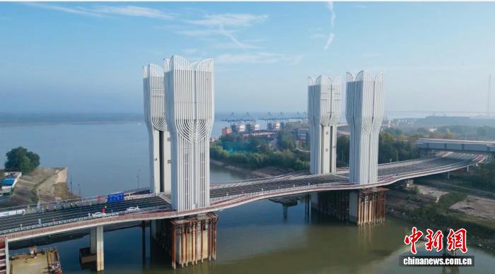 华中地区首座开启桥试通车 多项指标为亚洲第一中新网武汉10月31日电 (卢琪 蒲凯伦 余思思)华中地区首座开启桥——武汉右岸大道开启桥10月31日进入试通车阶段。该桥提升长度、宽度、高度、重量均为同类型开启桥亚洲第一。