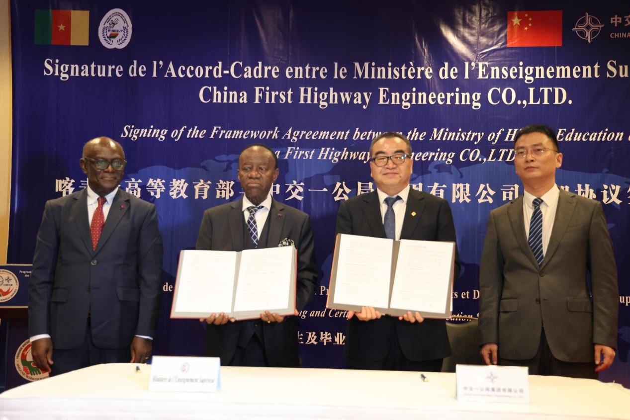 人民网内罗毕1月14日电(记者黄炜鑫)雅温得消息:当地时间1月13日,中交一公局集团有限公司与喀麦隆高等教育部在喀首都雅温得签订“喀麦隆高等教育部—中交一公局集团职业认证项目”框架协议。签约仪式现场。