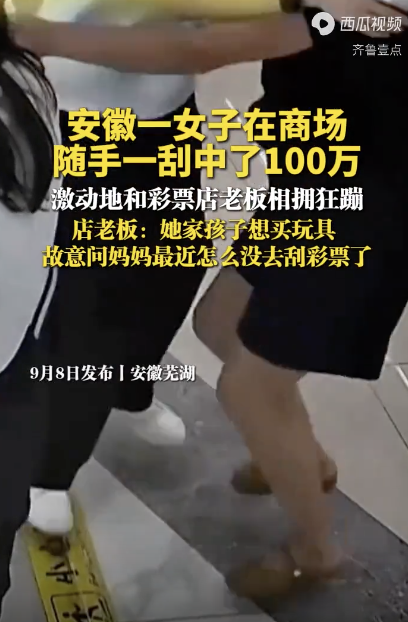 彩票店老板回应女子随手一刮中100万!彩票店老板回应女子随手一刮中100万。9月8日发布,安徽芜湖。一女子在商场随手一刮中了100万,激动地和彩票店老板相拥狂蹦,店老板:她家孩子想买玩具,故意问妈妈最近怎么没去刮彩票了。彩票店老板回应女子随手一刮中100万彩票店老板回应女子随手...