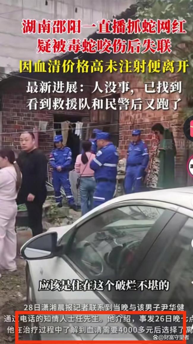 网红被蛇咬放弃救治后失联 生命与现实的沉重抉择洞口县人民医院急诊科内,医生手持病历记录摇头叹息。“银环蛇咬伤”的诊断记录与“患者拒绝治疗”的备注形成鲜明对比,见证了一个关于生命与现实的沉重抉择