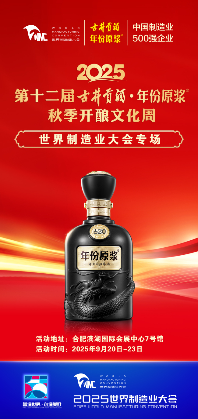九月金秋开酿,古井贡酒香飘2025世界制造业大会作为古井贡酒的四大重要品牌IP之一,秋酿活动首次开创了2025第十二届古井贡酒·年份原浆秋季开酿美酒文化周。