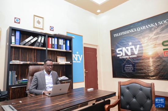 走进索马里国家电视台1月12日,在索马里首都摩加迪沙的索马里国家电视台,台长穆罕默德·卡菲·谢赫·阿布卡尔在办公室工作。新华社记者杨光摄索马里国家电视台是该国最主要的公共广播电视机构之一,向全国及海外受众提供新闻、教育、