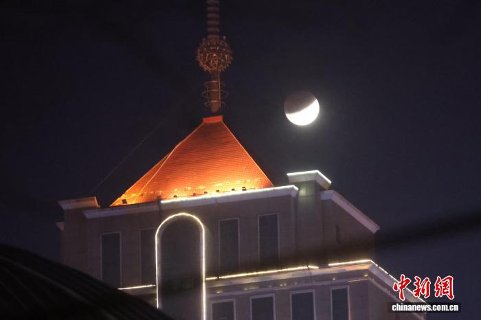青海西宁:元宵夜邂逅月全食图为在西宁麒麟湾公园拍摄的月全食景观。中新社记者 张忠苹 摄 图为在西宁麒麟湾公园拍摄的月全食景观。中新社记者 张忠苹 摄